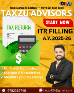 Online CA Services | Tax, GST, Trademark, Startup Help – Taxzu Get expert CA, CS, GST, ITR, Trademark, MSME & Startup registration services online. India’s trusted financial & legal advisory platform 🚀 Start Your Business with Confidence 📞 Call Us Now Twitter Youtube Instagram Click here Your name Your email Subject Your message (optional) Blogs Income Tax Calculator FY 2024-25 | TaxZu Income Tax Calculator FY 2024-25 (AY 2025-26) Total Annual Income (₹): Deductions (Under 80C, 80D etc.) - Optional (₹): Calculate Tax